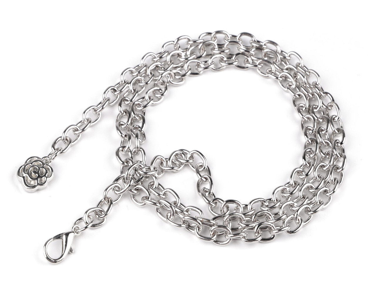 Pásek kovový / řetězový s přívěskem - 1 ks - 2 stříbrná růže