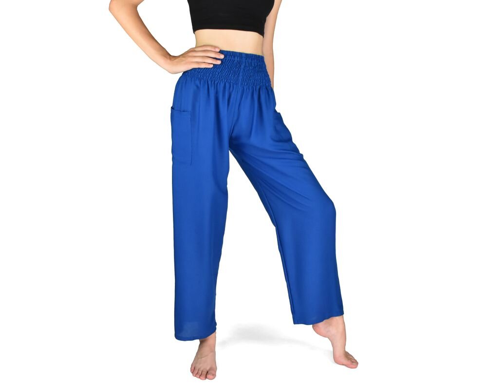 Popis: elastický pas, kapsa na každé nohavici, bez stahovací šňůrky, vysoké žabičkování, klasický sed, bez gumiček na konci nohavic. Kalhoty jsou z velmi příjemného materiálu. 100% viskóza