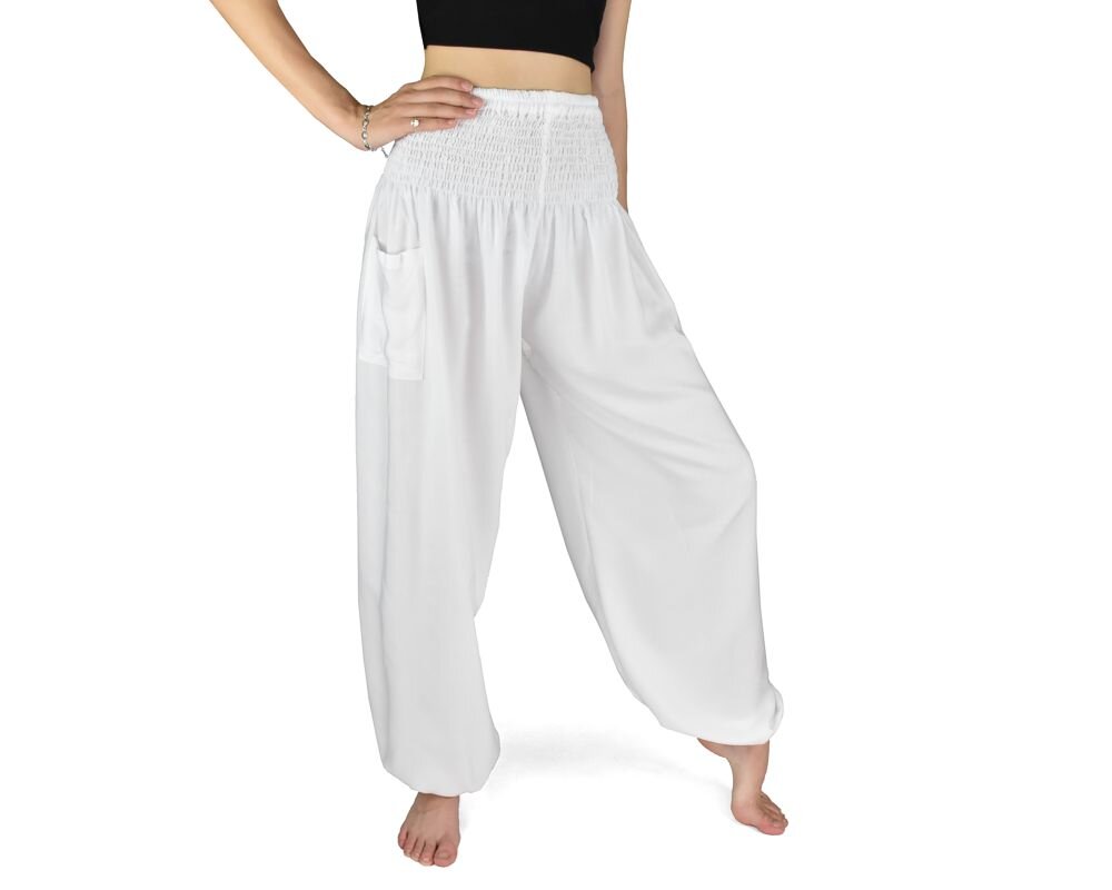 Popis: elastický pas, kapsa na každé nohavici, bez stahovací šňůrky, vysoké žabičkování, klasický sed, gumičky na konci nohavic. Kalhoty jsou z velmi příjemného materiálu. 100% viskóza