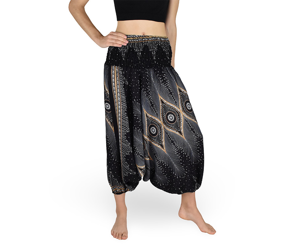 Harémové kalhoty aladin NATSU, krásnoočko, černo-béžová, bez šňůrky