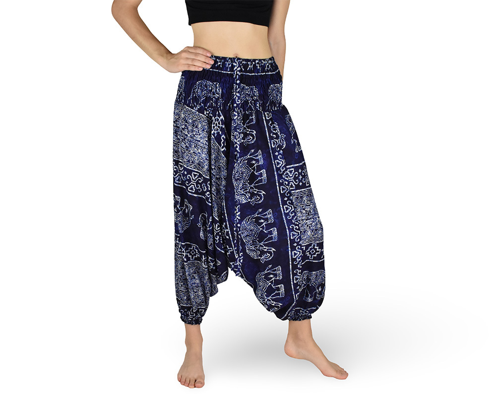 Harémové kalhoty aladin NATSU, sloni, kormidlo, modrá, se šňůrkou, sloni v pase