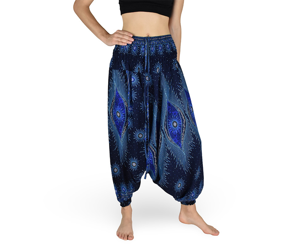 Harémové kalhoty aladin NATSU, plankton, modrá, se šňůrkou, kolečka v pase