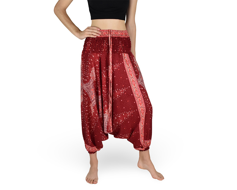 Harémové kalhoty aladin NATSU, paví diamant, červená, se šňůrkou, pruh v pase