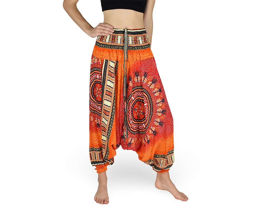 Trendy turecké (harémové) kalhoty, vícebarevné, velmi slušivé a pohodlné.Popis: elastický pas se žabkováním, gumička na konci nohavic, snížený sed, široké nohavice, možnost úvazu kolem krku pomocí šňůrky jako kalhotový overal.