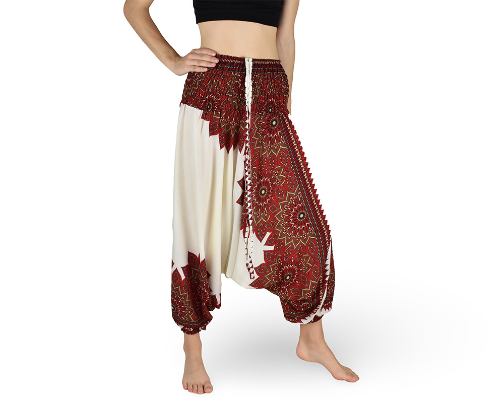 Harémové kalhoty aladin NATSU, mandala, se šňůrkou, krémově-červená, II. jakost