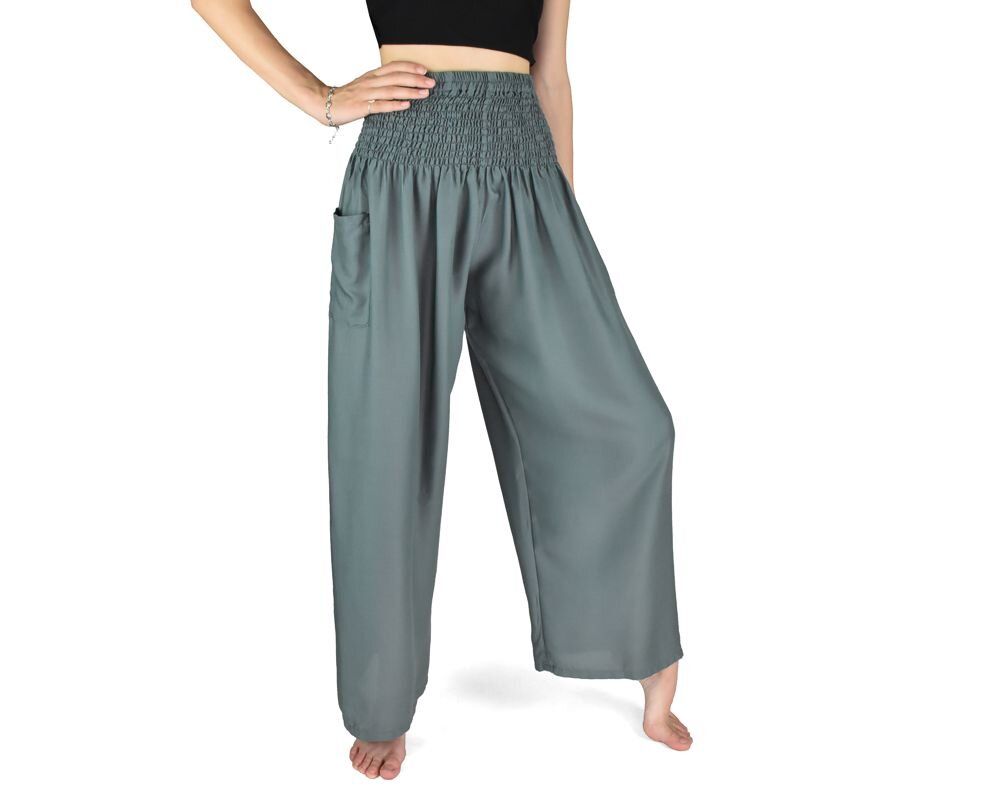 Popis: elastický pas, kapsa na každé nohavici, bez stahovací šňůrky, vysoké žabičkování, klasický sed, bez gumiček na konci nohavic. Kalhoty jsou z velmi příjemného materiálu. 100% viskóza