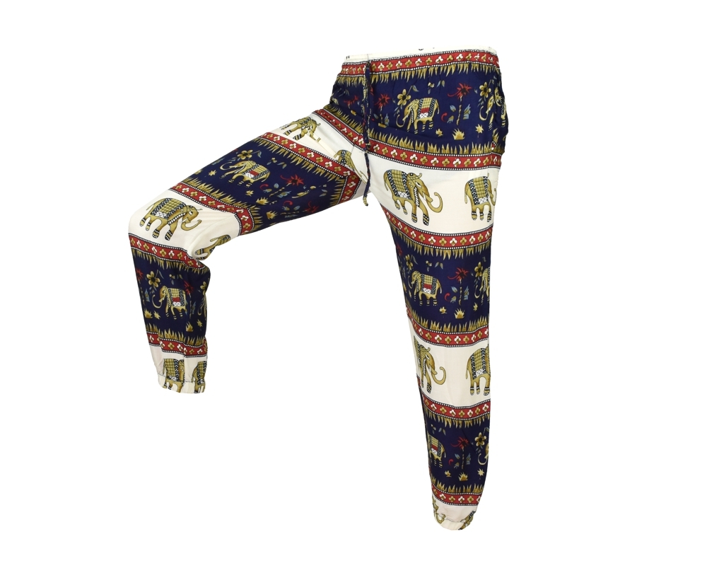 Kalhoty Joga WIN , bavlna, béžovo modré, hnědí sloni