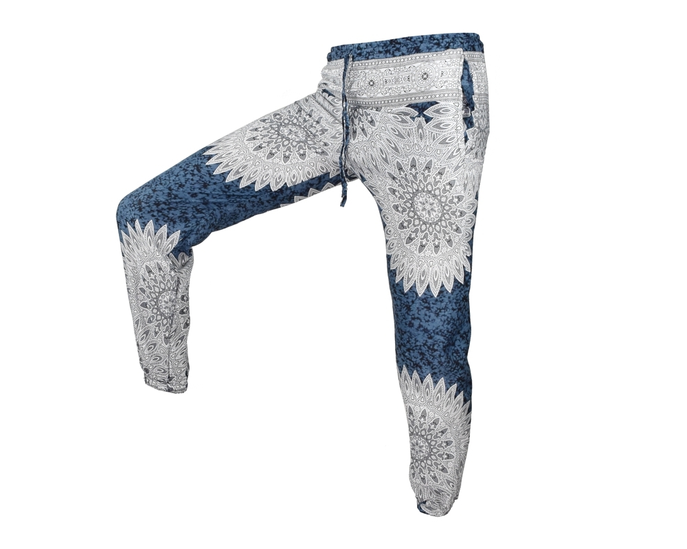 Kalhoty Joga WIN , bavlna, modro šedá, mandaly