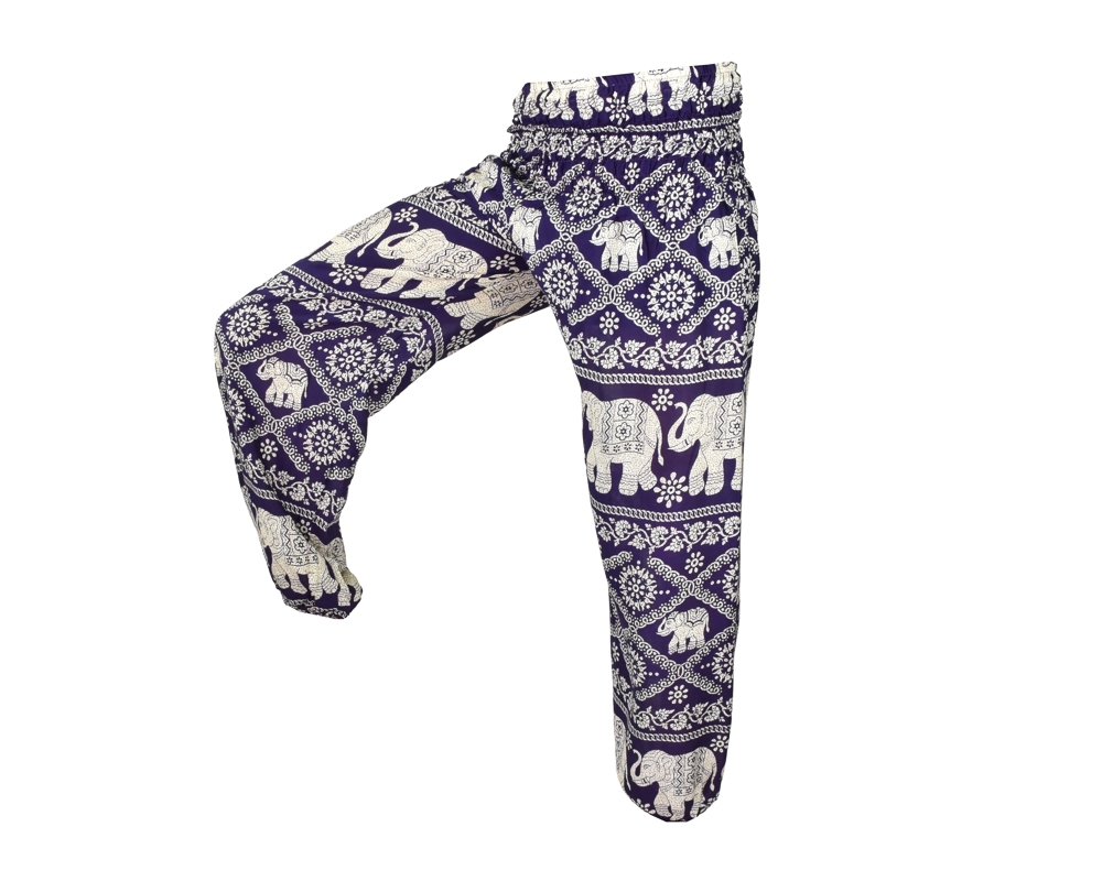Kalhoty Joga WASTE, fialové, bílí sloni