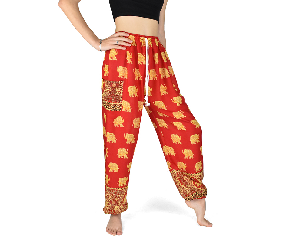 Kalhoty Joga SOLADA, červené, zlatí sloni