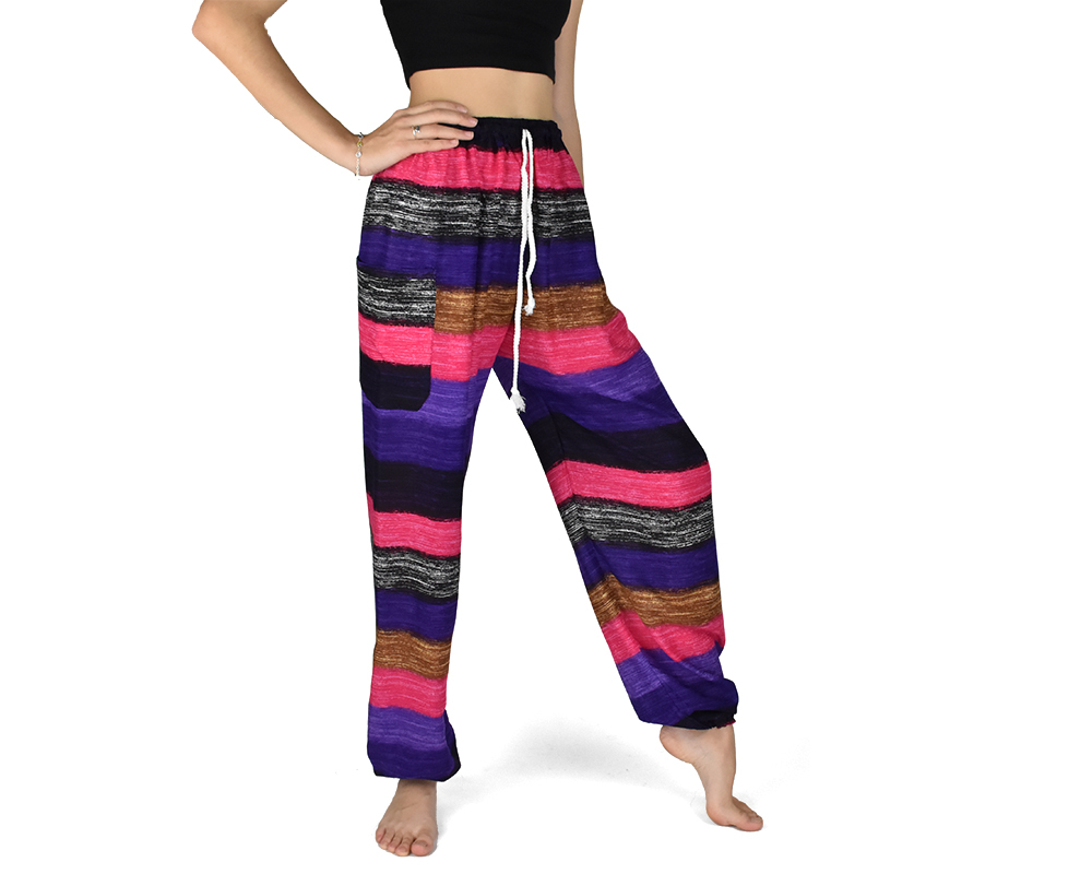 Velmi pohodlné, volné kalhoty jsou ideální do letních dnů a pro volnočasové aktivity. Popis: guma a šňůrka v pase, gumička na konci nohavic, jedna boční kapsa. Materiál: 100% bavlna. Rozměry:Celková délka: 102 cm, šířka pasu: 30 - 48 cm, délka sedu: 33 cm, šířka nohavice přes stehno: 31 cm. Textil, který nosíte, položte volně na stůl či jinou rovnou plochu. Změřte v místech dle popisu u zboží. Vypsané rozměry jsou rozměry daného kusu zboží.