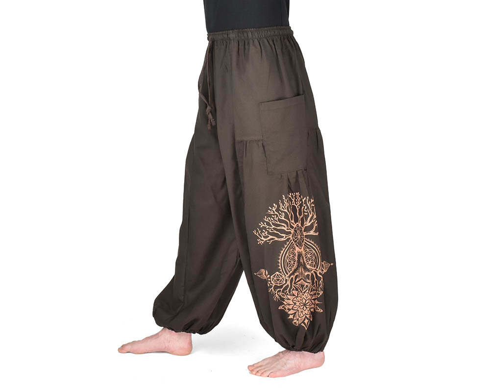 Pohodlné bavlněné kalhoty v balonovém střihu.Popis: v pase guma a šňůrka na stažení, dvě boční kapsy, nohavice do gumy, kontrastní orientální potisk
