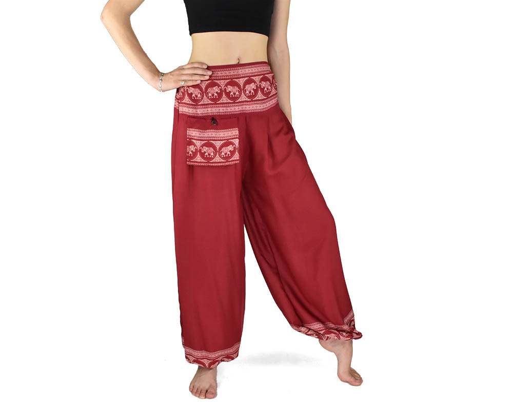 Kalhoty jóga MAHATI, červené, sloni v kolečku