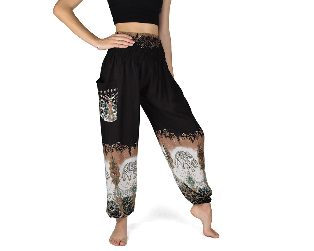 Kalhoty Joga WASTE, hnědé, zelené, sloni