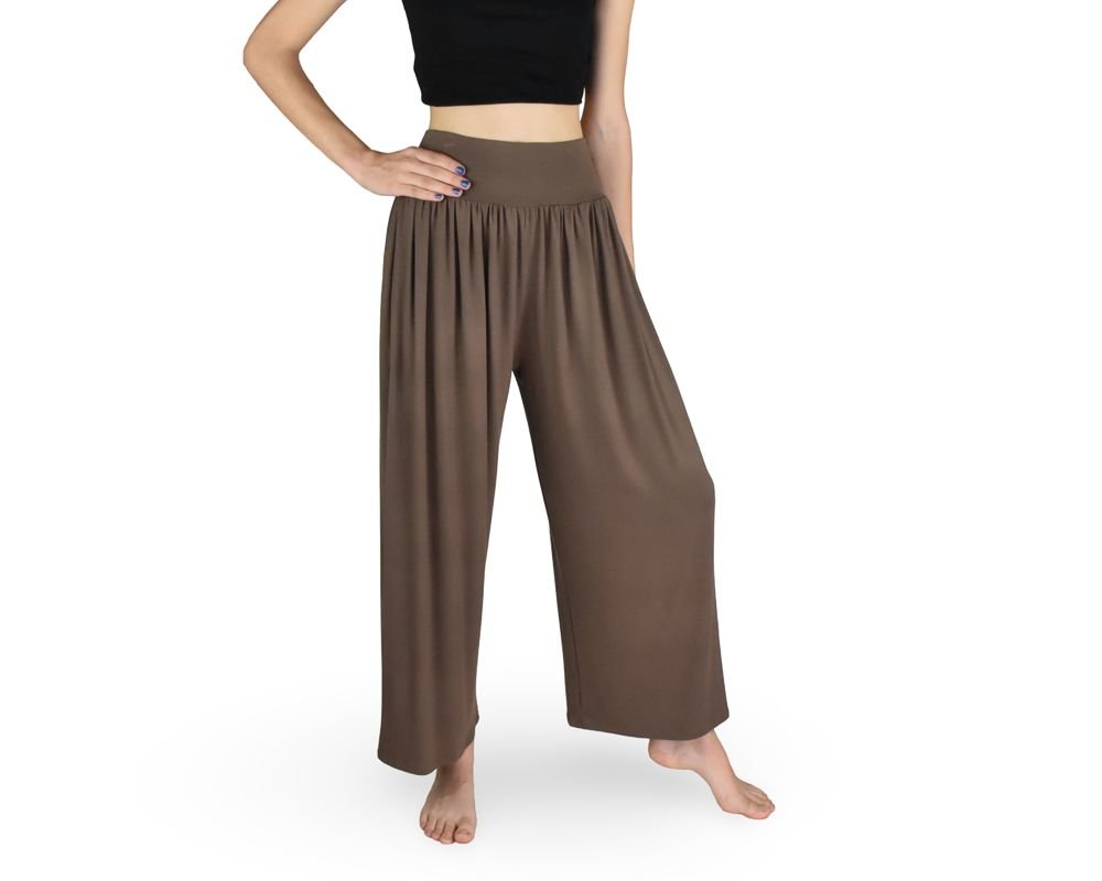 Volné dámské kalhoty s širokými nohavicemi a pohodlnou pasovkou.Materiál: 95 % viskóza, 5 % elastanRozměry:Šířka v pase: 31 - 45 cmŠířka přes boky: 73 cmCelková délka: 97 cmŠířka pasovky: 9 cmŠířka nohavice: 33 cmTextil, který nosíte, položte volně na stůl či jinou rovnou plochu. Změřte v místech dle popisu u zboží. Vypsané rozměry jsou rozměry daného kusu zboží.