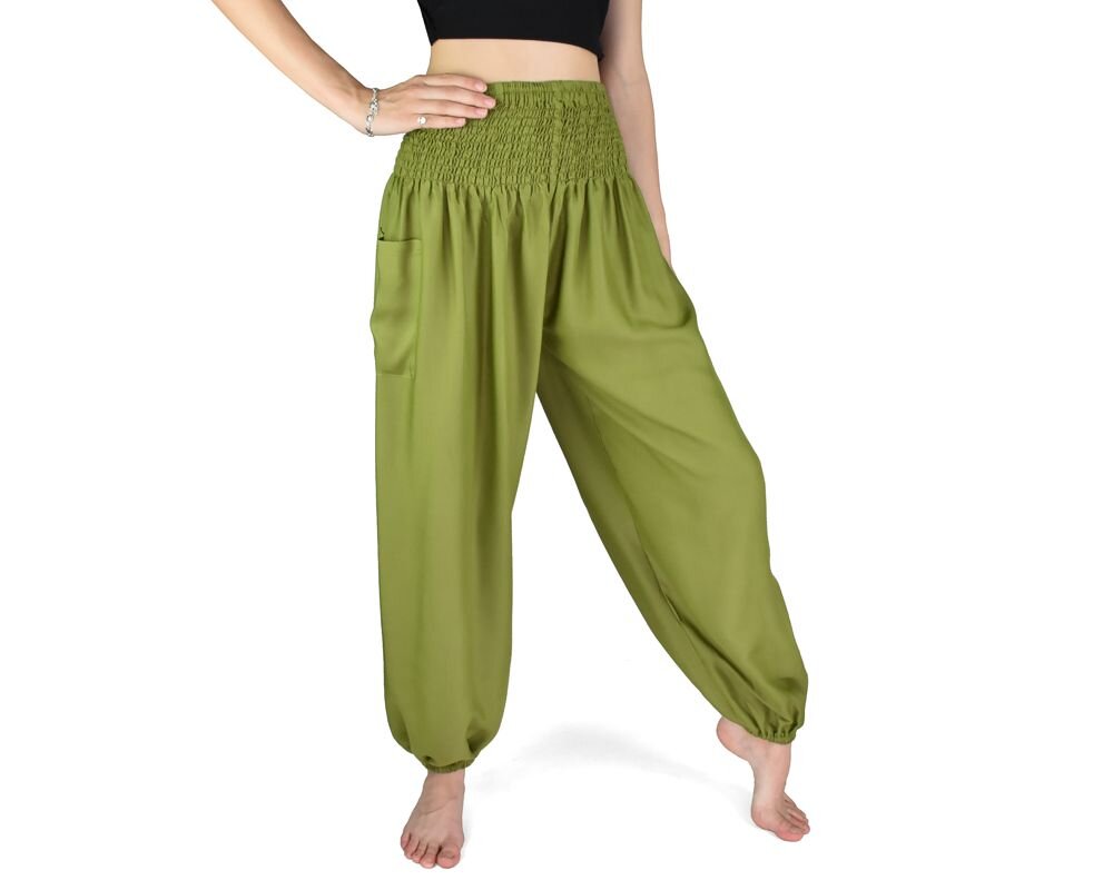 Popis: elastický pas, kapsa na každé nohavici, bez stahovací šňůrky, vysoké žabičkování, klasický sed, gumičky na konci nohavic. Kalhoty jsou z velmi příjemného materiálu. 100% viskóza