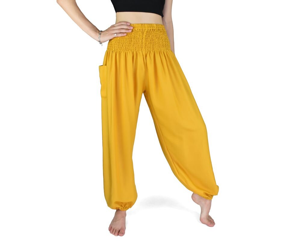 Popis: elastický pas, kapsa na každé nohavici, bez stahovací šňůrky, vysoké žabičkování, klasický sed, gumičky na konci nohavic. Kalhoty jsou z velmi příjemného materiálu. 100% viskóza