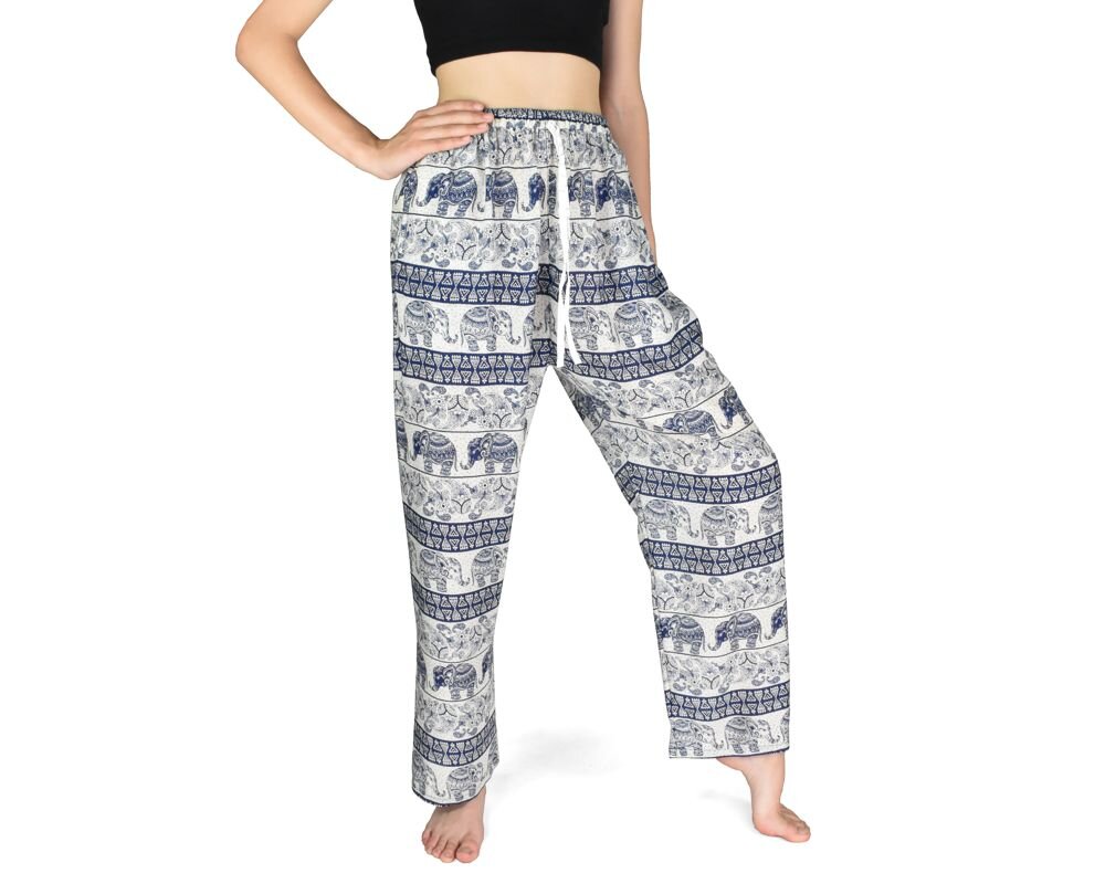 Velmi slušivé a pohodlné kalhoty v jednobarevném provedení se sloním potiskem.