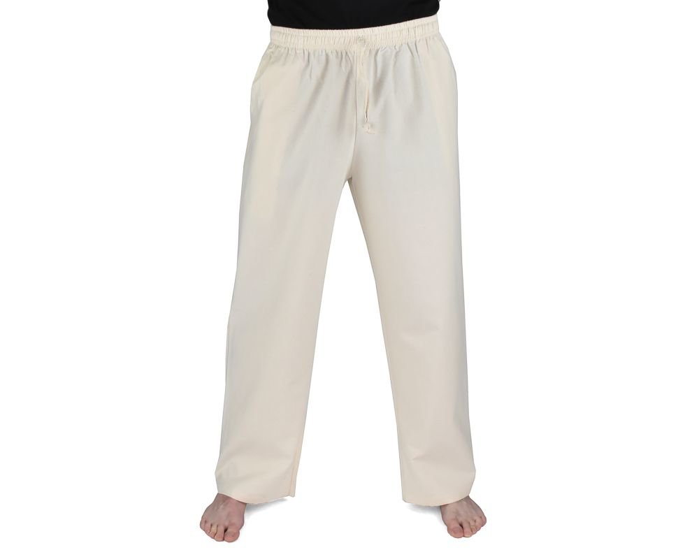 Popis: elastický pas, žabičkování, šňůrka na zavazování, bez gumiček na nohavicích, klasický sed, kapsy na stranách. Kalhoty jsou z velmi příjemného materiálu. 100% bavlna.