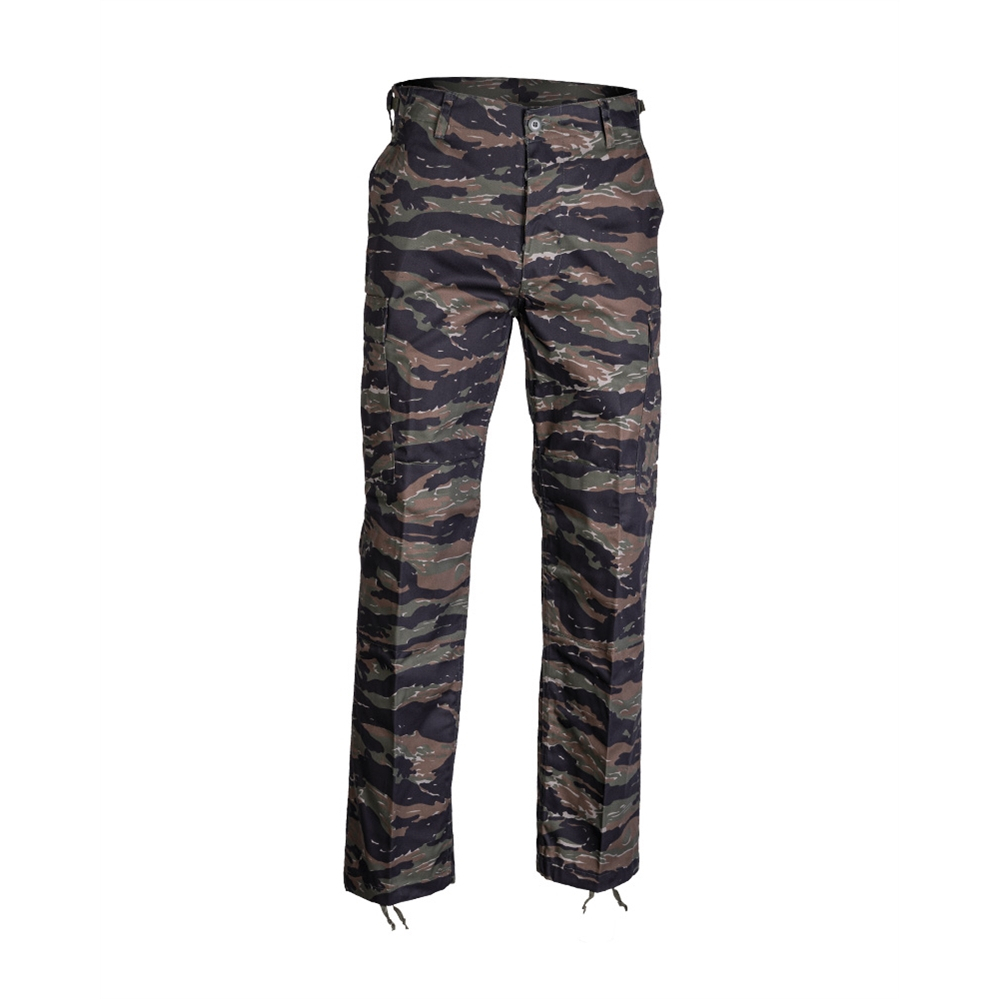 US kalhoty typu BDU od německé značky Mil-Tec.Vlastnosti:• 2 standartní kalhotové přední kapsy• 2 standartní kalhotové kapsy v zadní části (uzavíratelné klopou na knoflíky)• 2 kapsy na bocích stehen (uzavíratelné klopou na knoflíky)• zapínání je řešeno knoflíky• lze stahovat v pase nastavitelnými pásky na bocích• zesílený sed a kolena zajišťují vysokou životnost kalhot