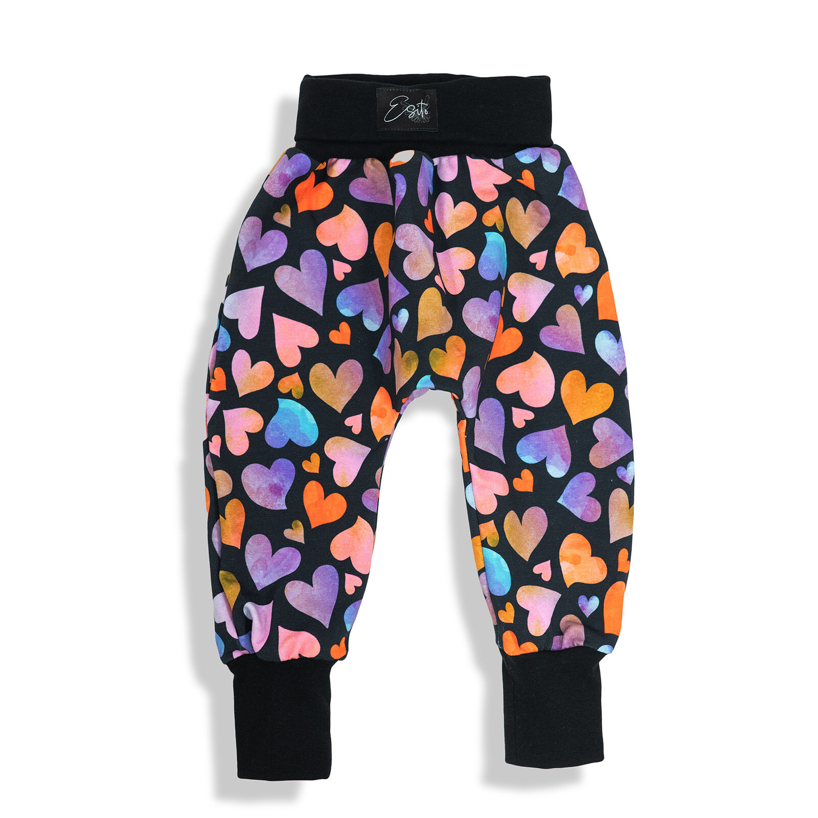 Dětské tepláky s vysokým pasem Barevná srdce; Barva: černá; Velikost: 98