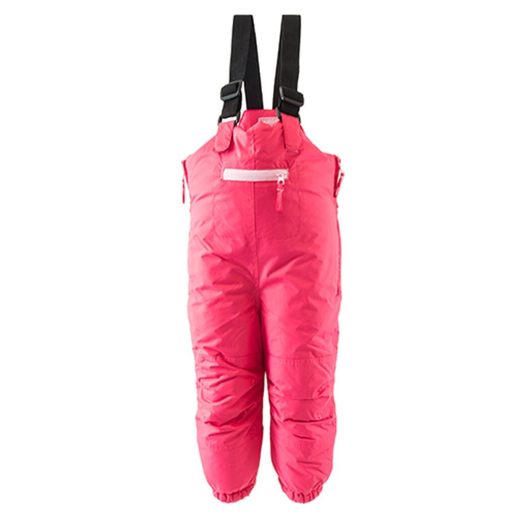 Dětské zimní kalhoty s vyšší přední a zadní častí. Regulovatelné elastické šle. Pas do gumy, 1 kapsa na zip, praktické 2 boční zipy na obou stranách kalhot pro snažší oblékání a vyslékání. Nohavice jsou zakončené do gumy a jsou vybaveny elastickým páskem pro upevnění přes obuv. Barevné kontrastní prvky.