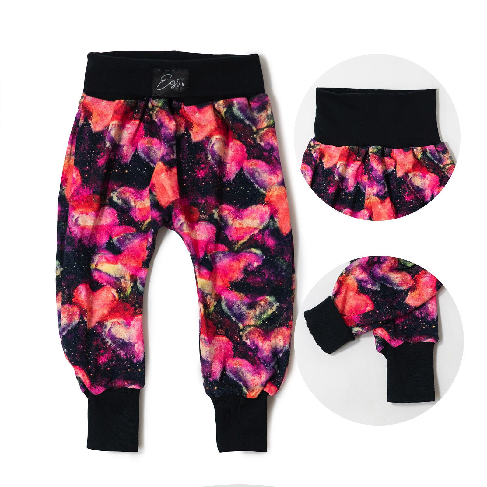 Dětské tepláky s vysokým pasem Duhová srdce; Barva: černá; Velikost: 80