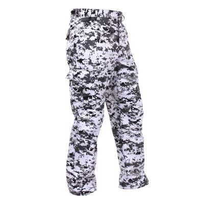 Kalhoty BDU city digital camo Kalhoty BDU jsou v maskovacím vzoru Citi Digital Camo. Ten je tvořen kombinací mnoha odstínů černé a bílé bar vy. Kalhoty jsou střihu BDU. Mají vyztužený sedák a kolena. Kalhoty mají všechna zapínání na knoflíky. Kapes je na kalhotách celkově 6. Jsou zde 2 velké zadní kapsy s klopami, 2 boční kapsy na ruce a drobnosti a 2 velké stehenní kapsy s klopami. Na konci nohavic jsou tkaničky. Kalhoty jsou ušity ve větších velikostech, proto si objednávejte velikost o 1 menší, než nosíte obvykle. (Pokud nosíte obvykle velikost L, objednejte si tyto kalhoty ve velikosti M). vlastnosti materiál: Kombinace bavlny a polyesteru vyztužený sedák vyztužená kolena nastavitelný pas zapínání poklopce na knoflíky zapínání kalhot v pase na knoflík počet kapes: 6 2 zadní kapsy 2 boční kapsy 2 stehenní kapsy tkaničky na nohavicích barva: Maskovací vzor City digital camo BDU City Digital Camo kombinují starý vyzkoušený střih kalhot s moderní digitální kamufláží. Kalhoty dobře zamaskují člověka v zasněženém prostředí a svým neobvyklým vzhledem zaujmou kdekoliv.