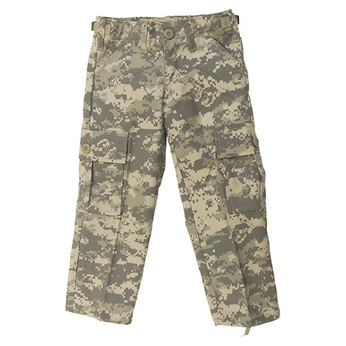 Dětské kalhoty typu US Army BDU. Stejně jako dospělá verze jsou vyrobeny z pohodlné, avšak odolné látky. Mají celkem 6 kapes, zapínání na zip, pásky pro úpravu pasu a stahovací šňůrky na koncích nohavic.