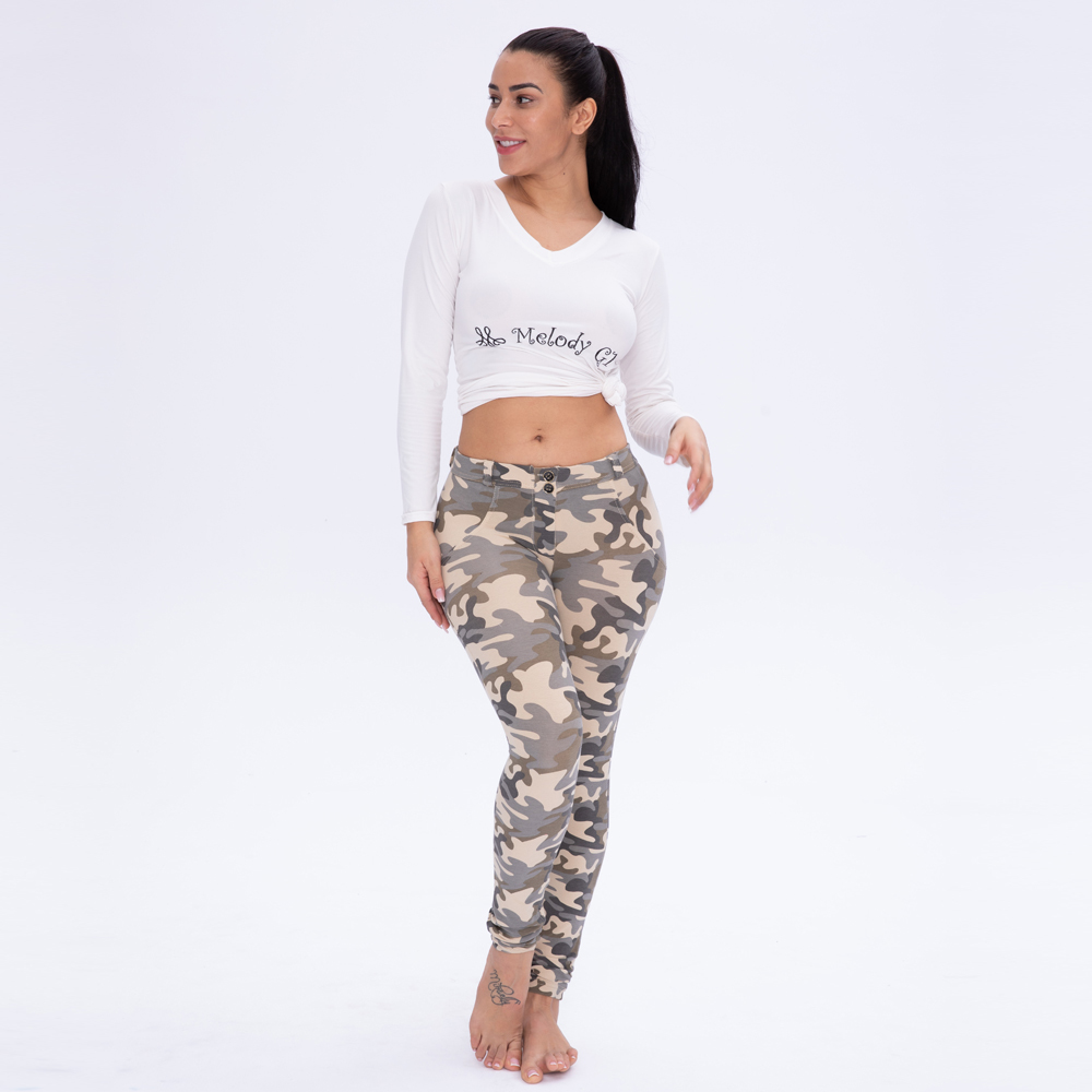 Dámské legíny Melody s Push-Up efektem Leg-Jeans, imitace Camo Sand, nízký pas