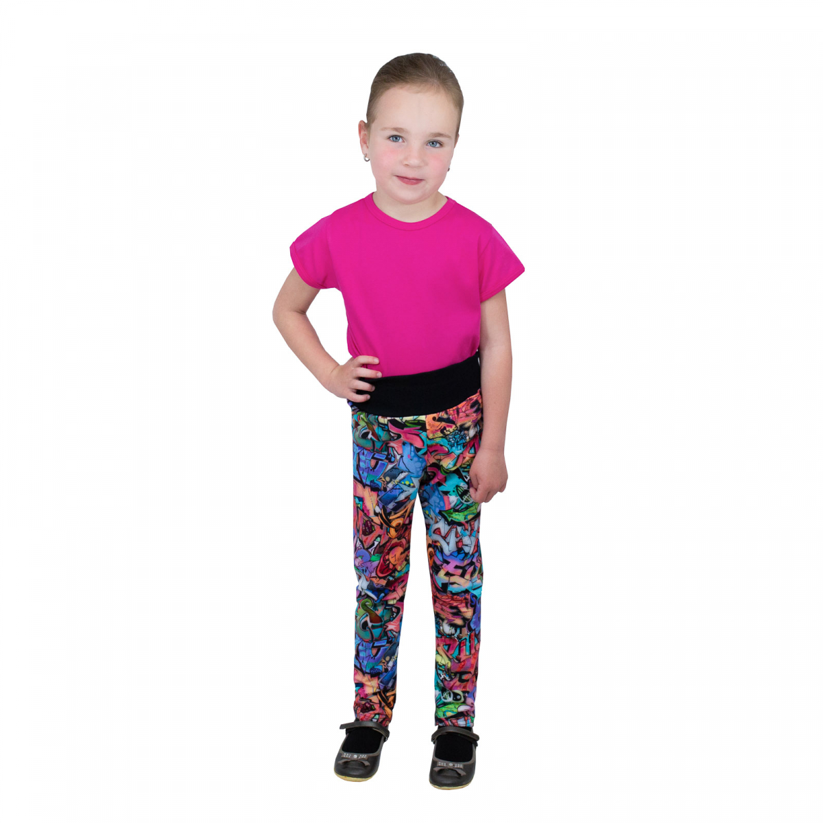 Veselé dětské legíny s potiskem Grafiti vyrobené z BIO bavlny v kvalitě a certifikací pro malé děti. Kvalitní český výrobek s příznivou cenou.