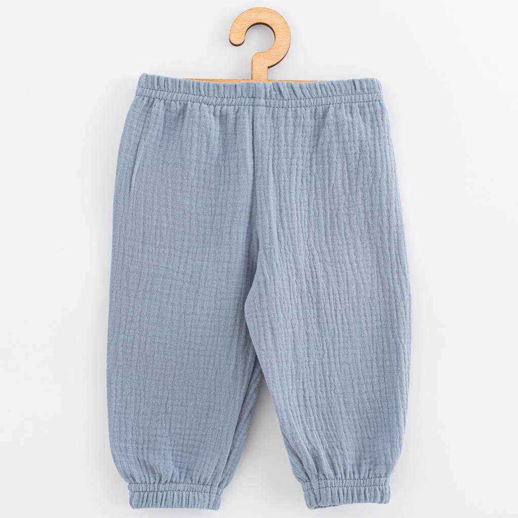 Kojenecké mušelínové kalhoty New Baby Feeling modrá - velikost 62 (3-6m)