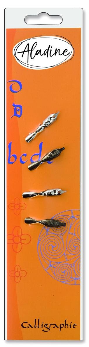 Náhradní perka na kaligrafii, sada 4 ks. Každé perko nich vyžaduje jiné používání a vytváří jiný efekt. Perko nasadíte do násadky (balení násadku neobsahuje). Tip: Namočte perko do inkoustu Aladine, když se hrot rovnoměrně potáhne inkoustem, můžete začít psát Používejte vždy kvalitní papíry...