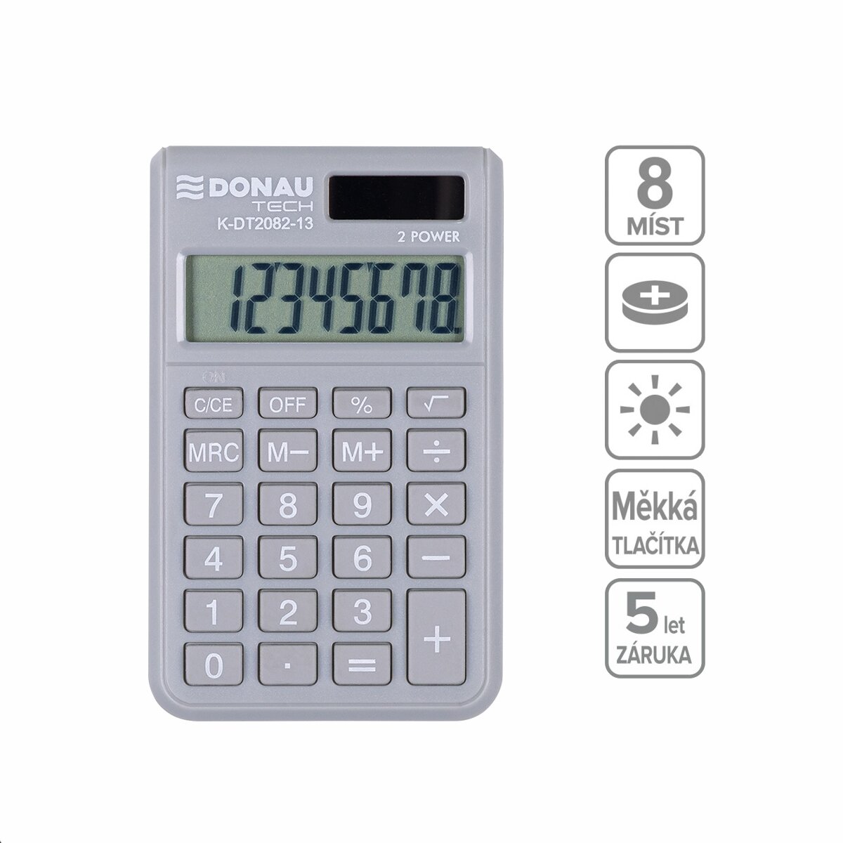 DONAU kapesní kalkulačka DONAU TECH 2082, 8místná, sv. šedá