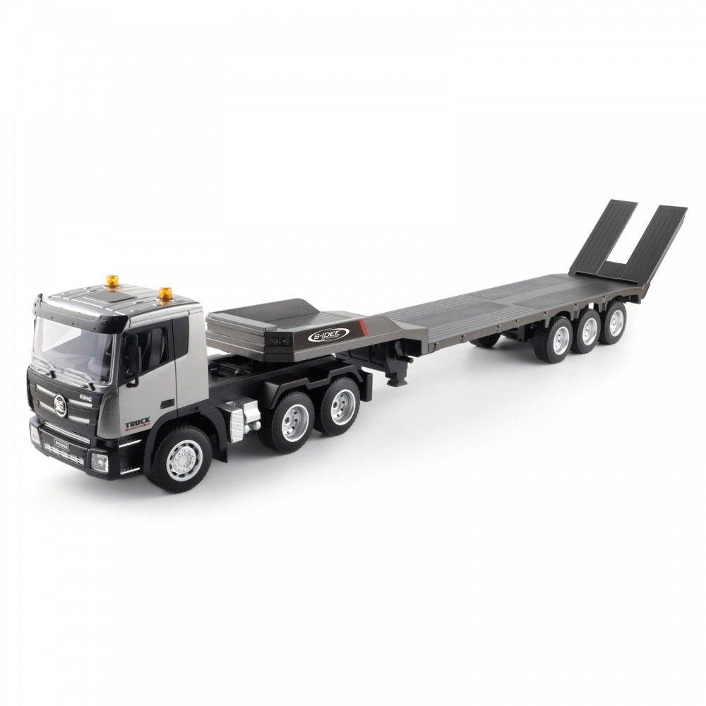 Proč si zvolit náš RC podvalník?1. Realistická funkčnost: Podvalník je vybaven rampou přívěsu, kterou lze snadno a rychle posouvat nahoru a dolů pomocí ruční kliky. Toto zajišťuje maximální autenticitu, kterou ocení každý milovník nákladních vozidel.2. Snadná manipulace: Díky desce točnice můžete přívěs rychle oddělit od nákladního vozidla pomocí odjišťovacího tlačítka. V přední části připojení k točnici je také možnost zaparkovat přívěs na podpěrách pomocí kliky.3. Světelné a zvukové efekty: Vozík je vybaven dvěma otočnými světly, která se střídavě rozsvěcují, aby byla jasně viditelná. Světlo světlometů nesvítí trvale, což šetří baterii a prodlužuje dobu jízdy. Realistické zvukové efekty dodávají ještě větší autentičnost.4. Snadná sestava a údržba: Model je dodáván ve třech dílech a jeho sestavení je snadné díky přiloženému šroubováku a náhradním šroubům. Stačí nabít baterii, vložit baterie do dálkového ovladače a jste připraveni na další dobrodružství!5. Všestranné použití: Tento model lze kombinovat s našimi stavebními vozidly v měřítku 1:24, což rozšiřuje možnosti jeho využití na vašem modelovém staveništi.