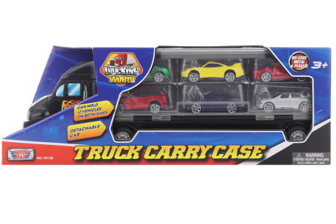 Plastový kamion s autíčky. Do kamionu lze schovat 12 autíček. Balení obsahuje 6 kovových autíček. Rozměry kamionu cca 35 x 12 cm. Rozměry balení cca 38,5 x 14 x 8,5 cm. Věk 3+