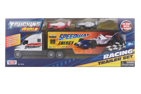 Kamion s formulemi. Tahač je kovový, návěs plastový. Balení obsahuje 2 plastové formule. Rozměry kamionu cca 37 x 9 cm. Rozměry balení cca 40,5 x 15,5 x 7 cm. Věk 3+ číst celé