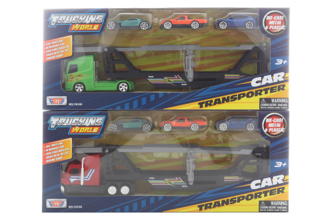 Plastový kamion přepravník s kovovými autíčky. Balení obsahuje celkem 3 autíčka. Rozměry balení cca 37 x 15,5 x 5,5 cm. Věk 3+ číst celé