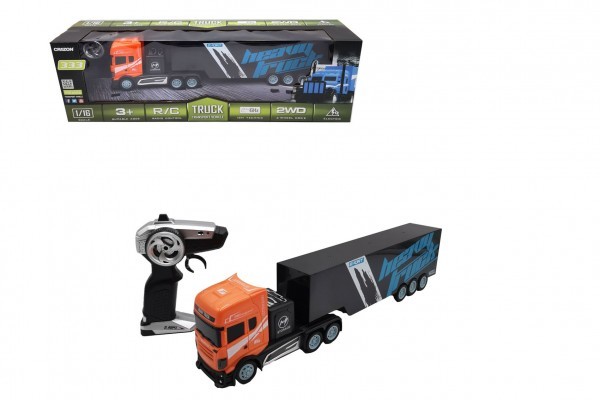 Velký kamion ovládaný dálkovým ovládáním pro malého řidiče. Každý malý chlapec, který má zájem o motorismus, by rád řídil kamion. Kamion s návěsem, který není odnímatelný je vyroben z plastu. Kamion je řízen multifunkční rádiovým dálkovým ovladačem pracujícím na 27 MHz a umožňuje tak plnou kontrolu nad tímto vozidlem. Baterie 6x AA nejsou součástí balení. Rozměry balení 57 x 18 x 14 cm. Vhodné pro děti od 3 let.