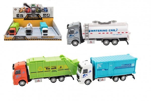 Kamion kov/plast 20-23cm na zpětné natažení 3 druhy 6ks v boxu