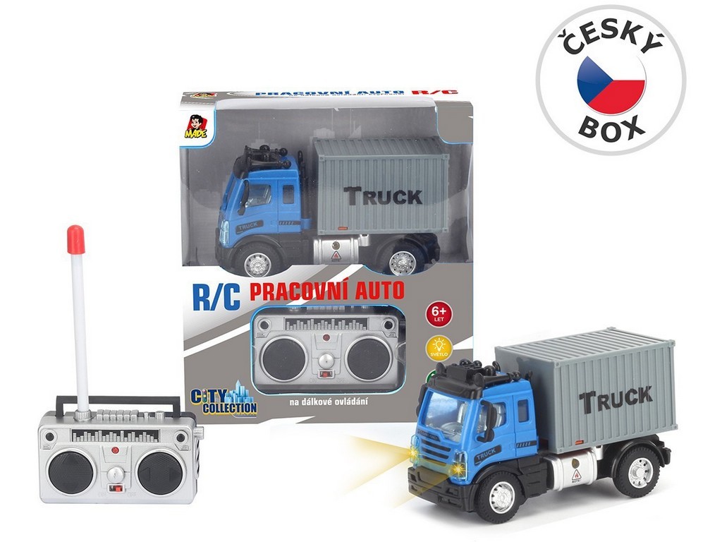 Pracovní auto s kontejnerem na dálkové ovládání z kolekce City collection. Ovladač v designu přenosného radiomagnetofonu. Auto jezdí dopředu, dozadu, vlevo a vpravo. Český box. Měřítko 1:64. Vhodné pro děti od 6 let. Světelné efekty.Napájení auto: baterie 2 x 1,5 V AA (nejsou součástí balení), ovladač: baterie 2 x 1,5 V AA (nejsou součástí balení). Auto obsahuje na spodní straně páčku jemného vyladění pohybu. Jestliž se auto při jízdě vpřed vychyluje na jednu stranu, je možné touto páčkou směr seřídit. Rozměry balení 19 x 16 x 6,5 cm.