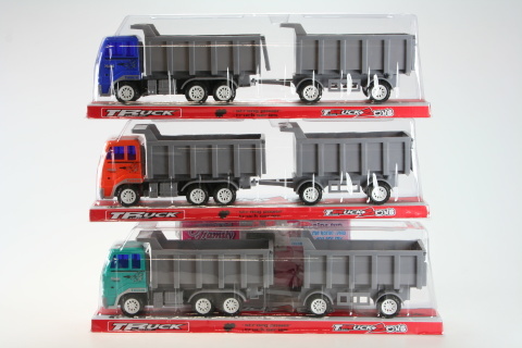 Kamion se sklápěcí korbou a přívěsem, který je taktéž sklápěcí. Délka cca 45cm. věk 3+ číst celé