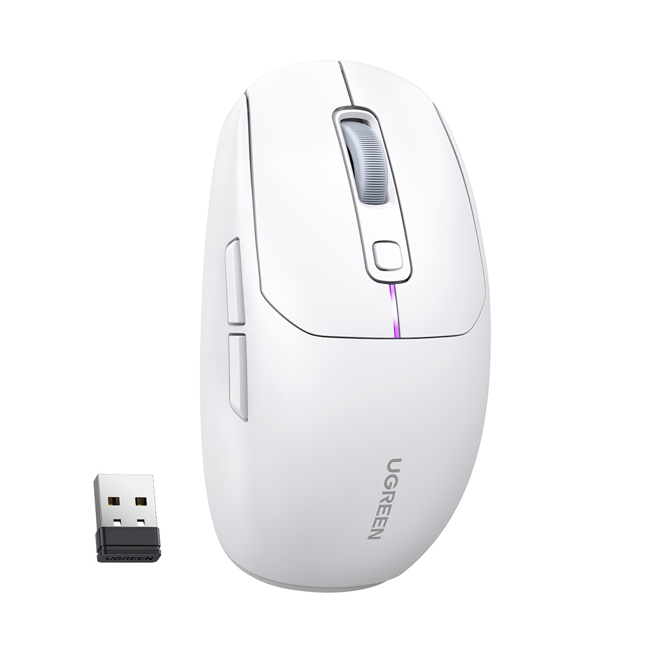 Mysz Ugreen MU103 - wygodna, z długą żywotnością baterii 700mAh, 5-stopniową regulacją DPI, podświetleniem LED. Kompatybilna z Windows, macOS, Android. Kolor: biały. číst celé