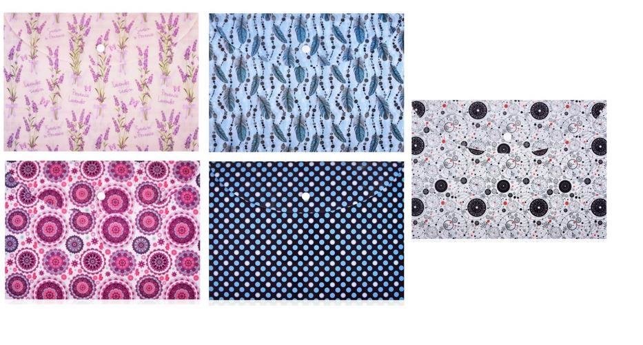 Ozdobna koperta na dokumenty formatu A5, zapinana na zatrzask. Mix wzorów, wzory wysyłane losowo číst celé