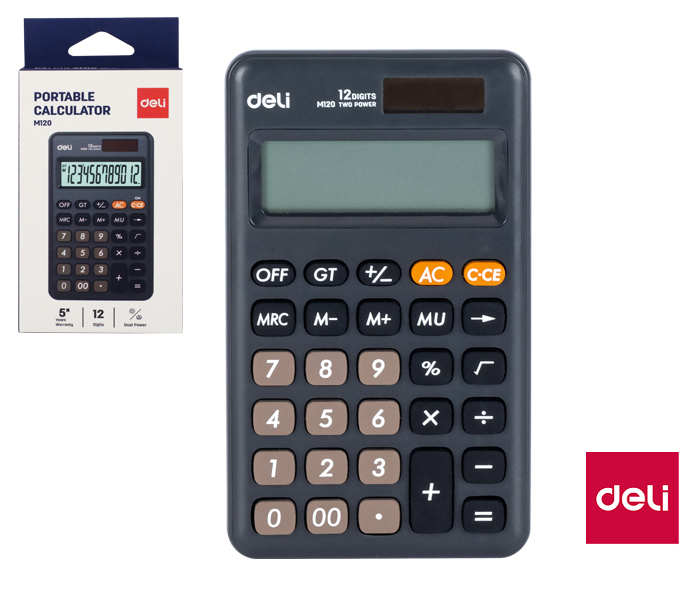Hledáte jednoduchou, ale přesto funkční kalkulačku, která vám usnadní práci doma, v kanceláři nebo ve škole? Kalkulačka DELI EM120 vás nezklame díky svému přehlednému 12místnému displeji a spolehlivému napájení. S touto kalkulačkou zvládnete rychle a přesně základní i pokročilé výpočty.