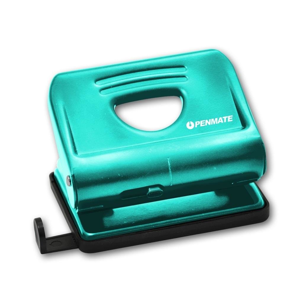 Obudowa oraz wszystkie elementy mechanizmu dziurkującego wykonane z metalu. Antypoślizgowa podstawa z pojemnikiem na ścinki. Wysuwany ogranicznik formatu z czytelnym wskaźnikiem rozmiaru. Dziurkuje do 20 kartek papieru o gramaturze 80 gsm. Głębokość wsuwania kartek: 12 mm, średnica otworów: 5,5 mm, rozstaw otworów: 80 mm. Kolorowe opakowanie pośrednie umożliwia łatwą identyfikację koloru dziurkacza w miejscach sprzedaży.