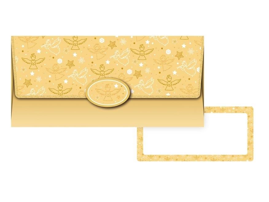 Koperta podarunkowa. Wewnątrz znajduje się ozdobna karteczka, na której można napisać życzenia. Każda koperta jest zapakowana osobno w folię z zawieszką euro. Wymiar: 180mm x 90mm x 2mm (szer. x wys. x gł.) Wyprodukowano w UE.