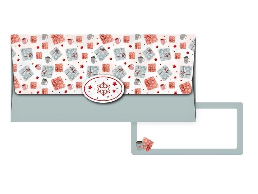 Koperta podarunkowa. Wewnątrz znajduje się ozdobna karteczka, na której można napisać życzenia. Każda koperta jest zapakowana osobno w folię z zawieszką euro. Wymiar: 180mm x 85mm x 2mm (szer. x wys. x gł.) Wyprodukowano w UE.