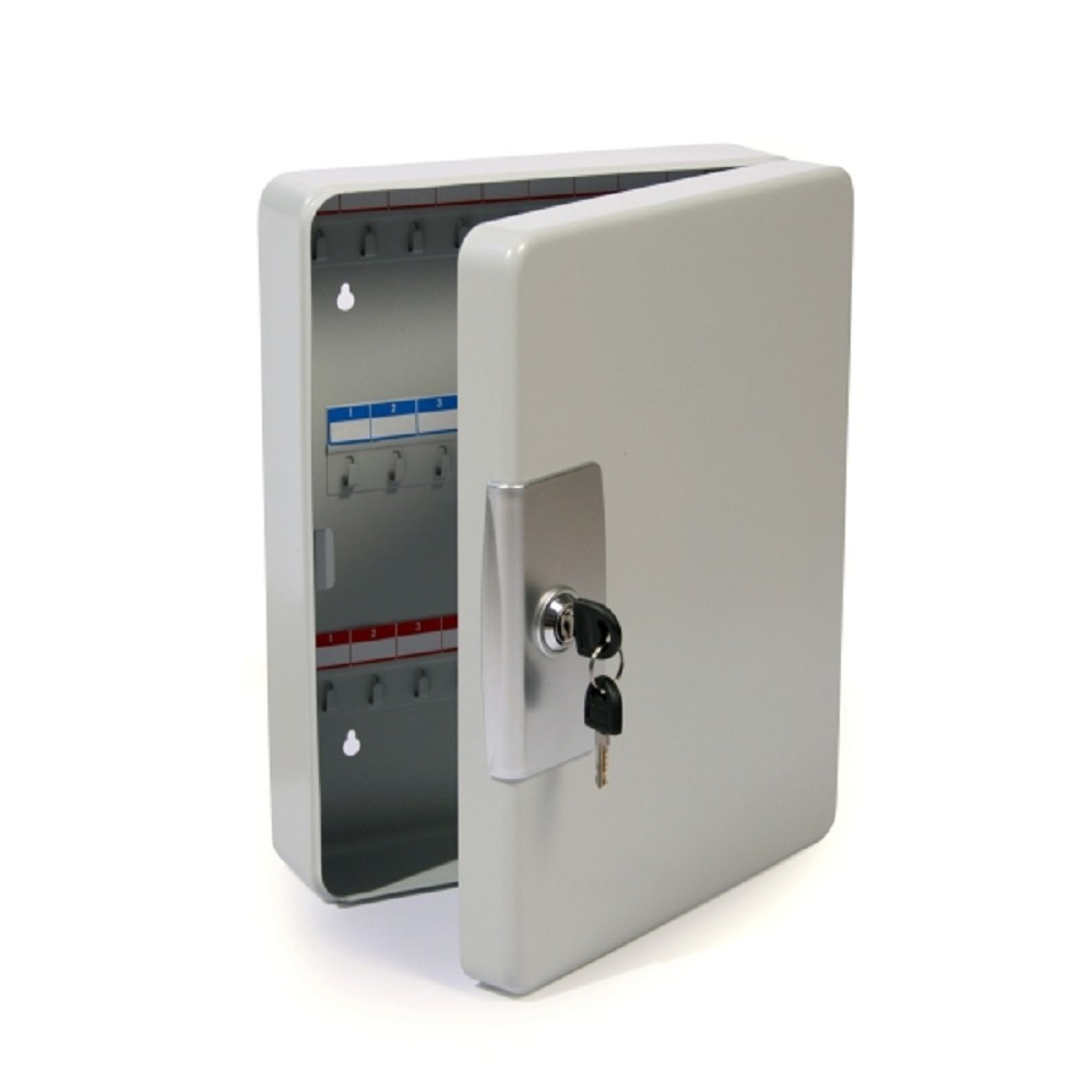 odolná kovová schránka pro 52 klíčůjednotlivá políčka jsou očíslována a dají se barevně odlišit pomocí zvlášť dodávaných jmenovek na klíčezamykání se 2 klíčibarva šedávčetně montážní sady pro uchycení na stěnurozměr: 300x230x78 mm