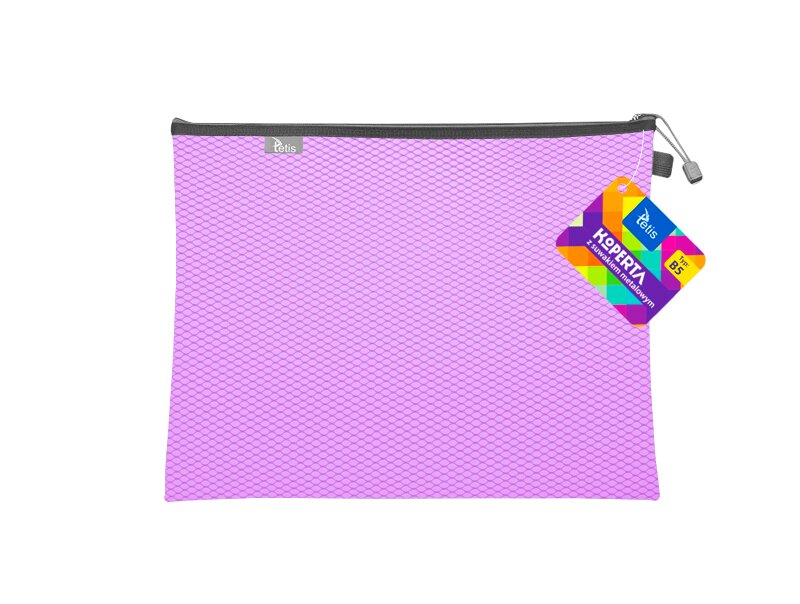 Koperta z suwakiem metalowym, mieszcząca format B5. Miękkie i elastyczne tworzywo. Wymiary koperty: 295x215 mm, grubość: 0,5 mm. Opakowanie: folia 1 sztuka
